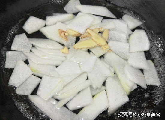 第三步:鍋燒熱後,放入適量的油,薑片,鹽,待水煮開後,先放入冬瓜,大火煮開3分鐘,這個也要看冬瓜的厚度,如果切薄片就易熟,煮個2分鐘即可。