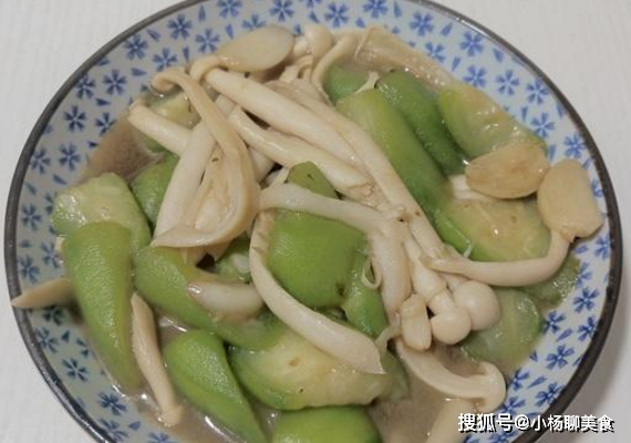 第四步:然後倒入海鮮菇,加入食鹽,蚝油,生抽,攪拌均勻即可,記住一點就是絲瓜皮要去除乾淨,會影響口感。夏天多吃菌菇類對身體有好處,能補充各種微量元素。