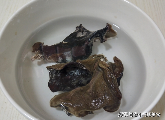 第二步:木耳加入溫水浸泡,木耳還可以買泡發好的,再手撕成小片狀,但個人覺得幹木耳做成的湯,更清脆,味道也比較好。