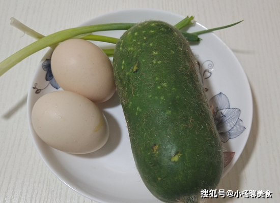 食材:節瓜一個,雞蛋兩個,香葱少許,食鹽,油,生薑,料酒