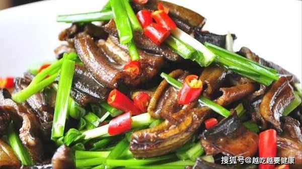 3、鍋裏放油,放入生薑大蒜幹辣椒花椒葱段爆香後,倒入鱔魚段翻炒。