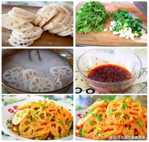 4、瀝幹水分後倒入碗裏,淋上醬汁,放點香菜、香葱,拌勻後就可以開吃了;這樣做的藕片吃起來脆爽可口,酸酸甜甜中又略帶著辣,吃起來太香!