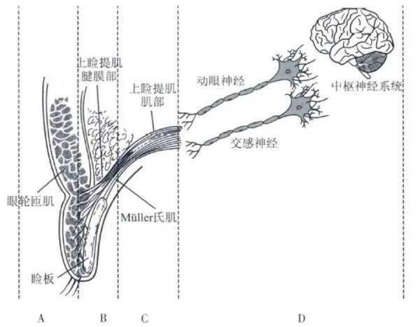 以往認為老年性上瞼下垂是由於皮膚鬆馳、彈性减退及眶隔薄弱、眶脂肪脫出、提上瞼肌乏力所造成。