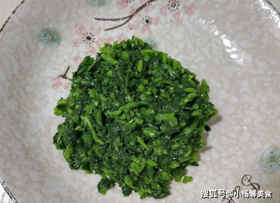 第二步:把西洋菜放入鍋中焯一下水,儘量的擠幹水分,接著切成細小的段,越細越好。