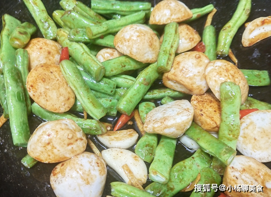 第五步:待刀豆肉丸炒香後,調入生抽,醬油,料酒,翻炒均勻就可以裝盤開吃了。