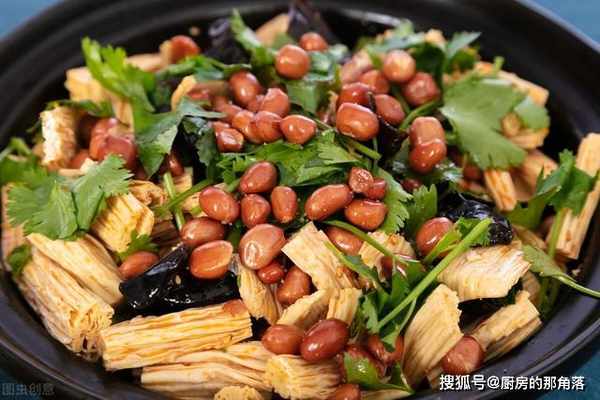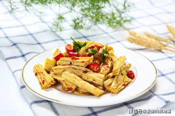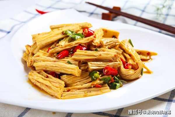 食材:腐竹、葱蒜、熟芝麻、辣椒面、生抽、陳醋、白糖、鹽、食用油