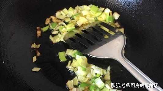 2、這道菜,咱們將料頭炒香調味後,必須加入清水小半勺,否則咱們將粉條放入鍋內後,很容易炒糊粘鍋發坨,這一點,咱們大家也要同樣牢記。