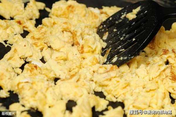 步驟二:把鍋燒熱之後我們倒上一定量的食用油,把雞蛋液倒進去開始煎,等到稍微定型的時候我們將其輕輕翻動,然後知道完全定型的時候我們將其切成小塊,接著把雞蛋盛出來。