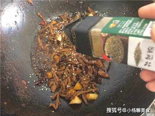 步驟3:起鍋燒上適量的油,燒熱之後就倒入香料,接著用小火炒,炒出香味上後倒入1勺豆瓣醬,接著繼續炒,有紅油之後就倒入鴨腸,接著翻炒均勻,倒入1聽啤酒。然後倒入調料,倒入2勺生抽、1勺醬油、1勺耗油、半勺糖,接著翻炒均勻,並且大火收汁。最後撒上白芝麻和孜然粉,並且拌勻之後備用。