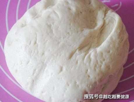 第六步,這個時候,麵團基本上發酵至2倍大了,移至在案板,揉勻排氣後,擀成餅狀;
