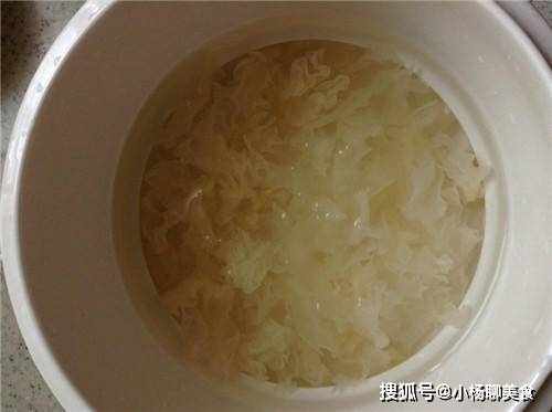 步驟1:先浸泡銀耳,將銀耳提前放入水中,然後開始浸泡,等1小時過後就差不多可以將銀耳撈出了。撈出的銀耳摸起來是很軟,泡發了的。然後清洗銀耳,將銀耳仔細的清洗上幾次,並且將銀耳的硬蒂剪掉,接著將銀耳全部都撕碎,放在一旁,再次清洗幾次後備用。