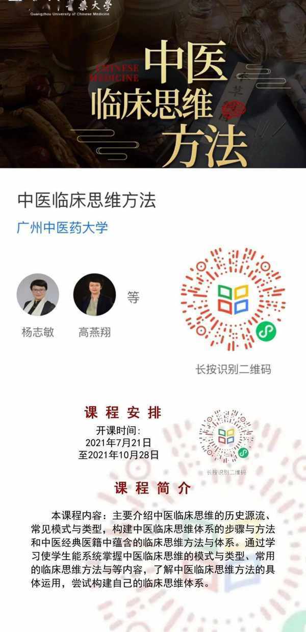 此次《中醫臨床思維方法》慕課內容全部免費,長按二維碼(見下),報名後即可學習。