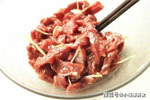 步驟1:先清洗牛柳,用手反復的揉搓幾次,將血水洗掉,接著就將牛柳撈出,並且瀝幹水分,然後用廚房用紙吸幹水分,然後將牛柳放在菜板上,用刀切成小條,放入碗中。拿出薑,洗乾淨之後切成薑絲放入牛肉中,接著加入2小勺雞粉、水澱粉、黑胡椒碎,用筷子快速攪拌均勻後,醃制上20分鐘。