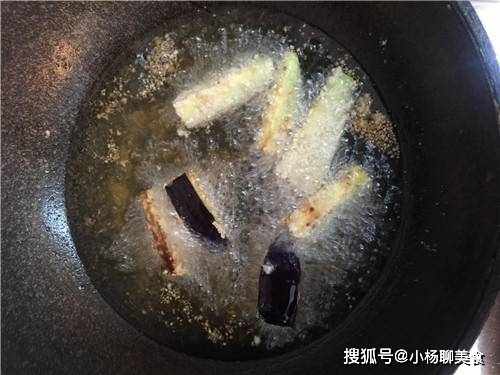 步驟2:起鍋燒上適量油,油溫到達八成熱時將茄子挨個放入油鍋中炸,炸到變成金黃色之後就可以關火,瀝幹油撈出備用。然後辣椒拿出,清洗乾淨之後將辣椒切成碎末,葱洗乾淨切掉根之後切成碎末,薑刮掉皮,洗乾淨切成碎末,蒜剝掉皮切成碎末備用。