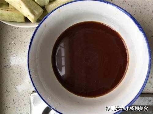 步驟1:拿出2根茄子,將茄子放在水中清洗乾淨之後就將茄子去掉蒂把之後切成長條。然後拿出地瓜粉,將它放在碗中,接著用勺子將地瓜粉壓碎一點備用。緊接著在茄子上撒上一點水,並且將茄子放在地瓜粉中滾,將所有的茄子都均勻裹上地瓜粉備用。準備一個碗,倒入蚝油、醋、糖、生抽一用筷子攪拌均勻調成汁。
