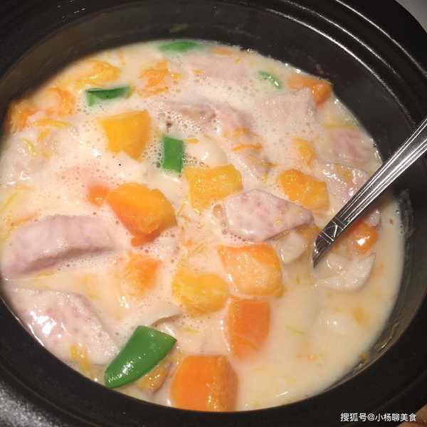 這道南瓜芋頭湯好喝,南瓜吃起來香甜清水,芋頭吃起來軟糯細膩,椰汁的濃郁,每次做一鍋都不會剩哦,家人都喜歡,天氣炎熱,大家多吃點鹼性食物,因為它能够平衡自身的酸鹼度,還能保護腸胃,讓腸道更加乾淨通暢,芋頭飽腹感强,粗纖維豐富,是很好的排毒食物。