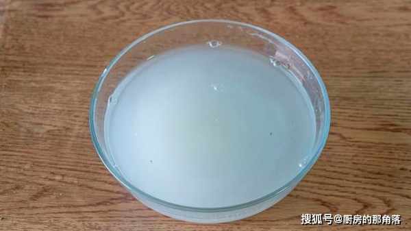 6、8克的安琪甜酒曲用500克溫開水化開。