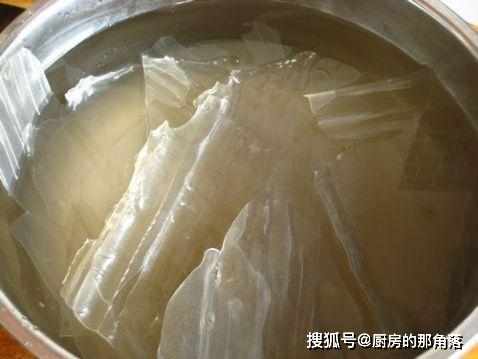 2、接著,咱們準備這道菜的配料和料頭,將幹粉皮兩張,放在溫開水中,浸泡半小時備用。將青尖椒一顆,切成滾刀塊備用,大蒜一頭,輕輕拍散備用,接著,將大葱切成蔥花,老薑切成薑片,放在空碗中,接著,再放入少許的白芷片,桂皮,八角,和花椒。