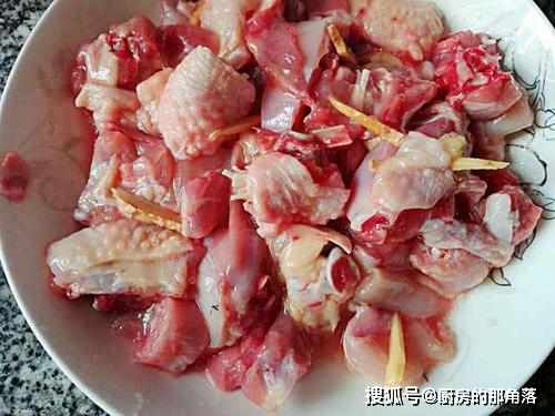 1、雞肉剁塊,後必須放在清水中,多清洗幾遍,這樣能有效的去除其中的血水,這一點咱們大家要牢記。
