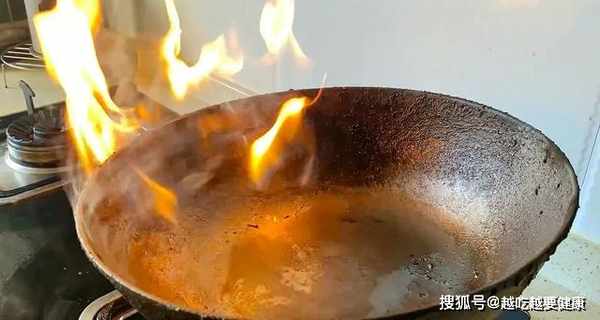 2.這個時候我們不要害怕,代表鐵鍋底部的油污正在燃燒。燃燒不到半分鐘的時間,他的這個火苗就會慢慢地减少了。等待逐漸沒有的時候,就代表這塊的油污已經燒乾淨了。然後再燒制鐵鍋的另一半。