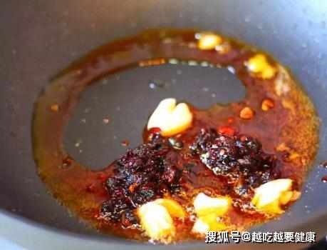 第三步,待將所有的食材都準備到位後,即可開始炒菜,炒鍋中放入適量的食用油,將其置於火上燒熱後,放入豆豉和蒜末,小火將其中的香味煸炒出來,然後放入一勺黃豆醬;