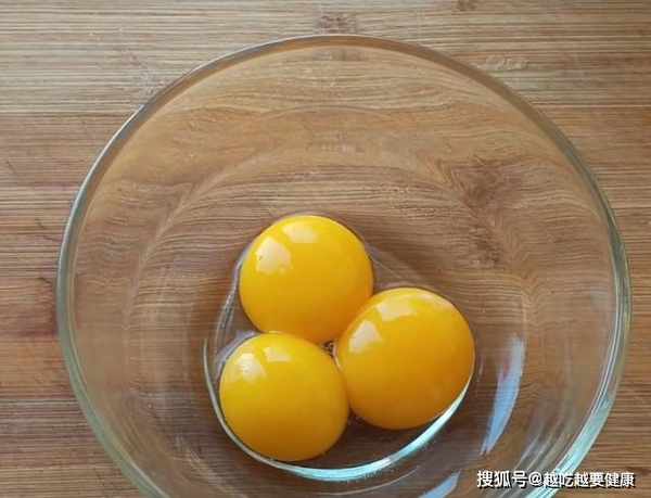 3.然後將準備好的三個母雞蛋,蛋清與蛋黃分離。這裡我們只用蛋黃就可以,只用蛋黃做出來桃酥口感更加酥脆而且不發硬,然後加入白糖60克,泡打粉3克,小蘇打2克,這是做桃酥的關鍵一步。