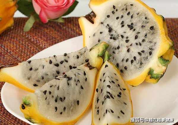 燕窩果又被叫做麒麟果,跟火龍果是近親,或者說是兄弟也不為過。燕窩果就長相、形狀來說,跟火龍果是一模一樣的,但是果皮顏色是金黃色的,整體特別好看。而裡面的果肉,跟白心火龍果一樣,但是味道和口感都要比火龍果更好,味道甘甜、口感順滑,吃起來跟燕窩非常相似。