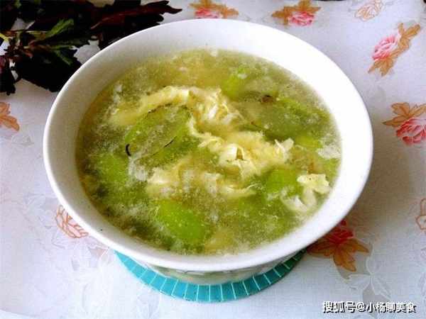 首先把絲瓜切成塊,接著打幾個雞蛋在碗裏,並且放一點食用鹽和清水下去,攪拌均勻之後備用,起鍋倒一點油,把絲瓜放下去炒軟,然後倒水加入食用鹽、雞精、蓋上鍋蓋煮個幾分鐘,最後把雞蛋液倒下去,一道甜美的絲瓜蛋湯就做好了。