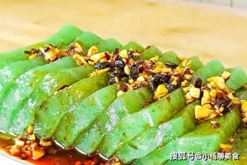 3、準備上一個容器,四周稍微的抹上一點油,而後將濃稠黃瓜汁倒進去,放凉之後入冰柜冰凍一會,將大蒜等配料弄成一碗醬汁,然後將黃瓜汁切片,與醬汁拌勻就可以開吃了。