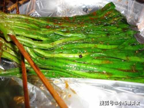 第二個菜則是韭菜,這其實也是在燒烤中,比較不錯的一款美味,等到韭菜被烤軟之後,我們再刷上一層美味的醬料,吃起來那叫一個爽。但是和异性約會的時候,我們最好還是不要點這道菜了,因為吃起來是真的有些不方便,要知道綠油油韭菜塞在牙縫裏,那是相當顯眼的。
