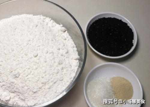 準備食材:麵粉400g、黑芝麻80g、白糖10g、酵母5g