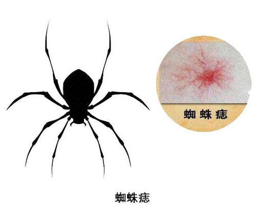而一旦肝功能持續走低,就會導致大量雌激素在體內不斷堆積,並刺激體表毛細血管擴張,在患者的四肢、軀幹和面部就可出現異常的蜘蛛痣,它以一個紅色斑點或斑塊為中心,其周圍又輻射出了大量纖細血管,看起來就如同蜘蛛趴在皮膚上一般!