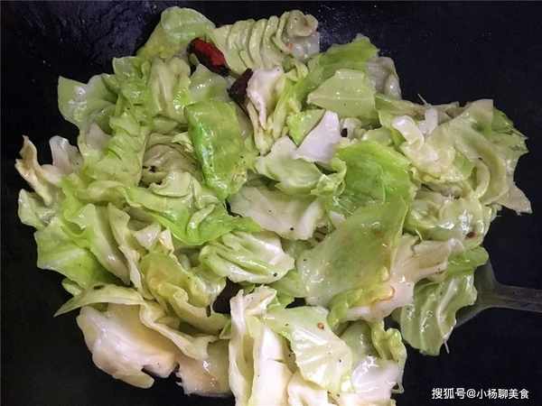 伙夫告訴我關鍵是他了一勺糖,我們先要把包菜用手撕開,把特別硬的部分不要,接著起鍋倒油,油溫燒熱之後要先放一勺白糖下去,然後再放些蒜末了辣椒炒香,接著再把包菜給放下去翻炒,開大火翻炒幾下就可以放些生抽、食用鹽翻炒均勻入味,就可以裝盤出鍋了。
