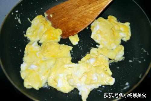 2、雞蛋入碗打散,加上食鹽、白醋、水澱粉攪勻,然後起鍋燒油,將蛋液下鍋,翻炒成小塊盛出待用。