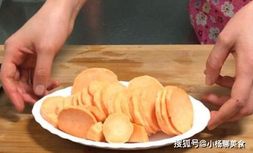首先將紅薯清洗乾淨,然後削去外皮,將其切製成薄片,隨後放入蒸鍋當中,蒸熟之後放到盆子裡面,用東西將其壓制成泥狀。