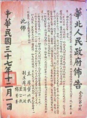1947年夏季,中國人民解放軍在地方部隊和人民群眾的配合下,取得了解放戰爭的重大勝利,各地區之間的貿易聯系和物資交流日益增多,但各解放區當時流通的貨幣有300種之多,成為經濟發展和貿易往來的重大障礙,給野戰軍機動作戰也帶來很大困難,統一各解放區的貨幣工作刻不容緩。
