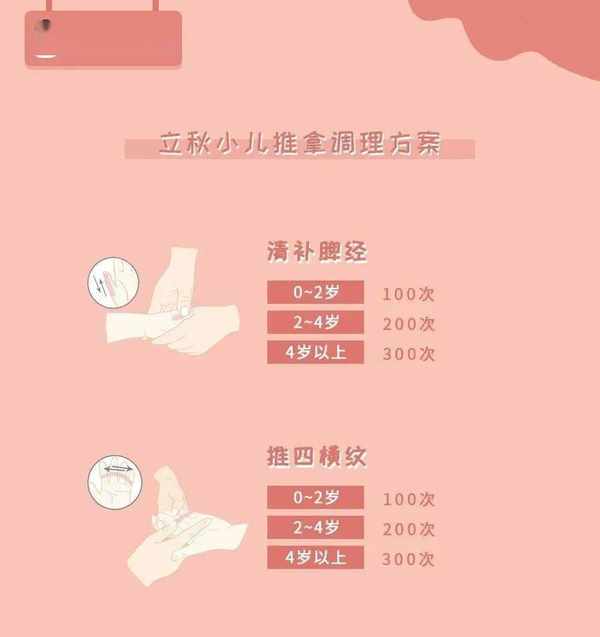 秋季是人體陽消陰長的季節,往年我們通常採用潤肺、健脾的小兒推拿手法。今年的立秋節氣比較特別,濕氣比較重一些,囙此,我們主要推薦清補脾經、推四橫紋的方法,以幫助孩子健脾祛濕為主。