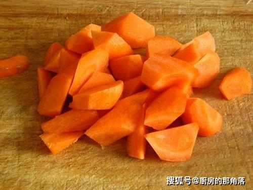 2、接著,咱們將胡蘿蔔一個削皮後,切成滾刀塊備用,然後咱們準備空碗一個,放入冰糖十克備用,大家注意,放冰糖糖的目的是為了,讓雞翅收汁的時候,顏色更加透亮有食欲。接下來咱們開始上火製作。