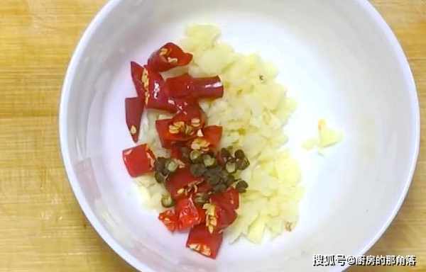 2.準備料頭:大蒜兩瓣拍散切碎備用,幹辣椒段切碎備用。