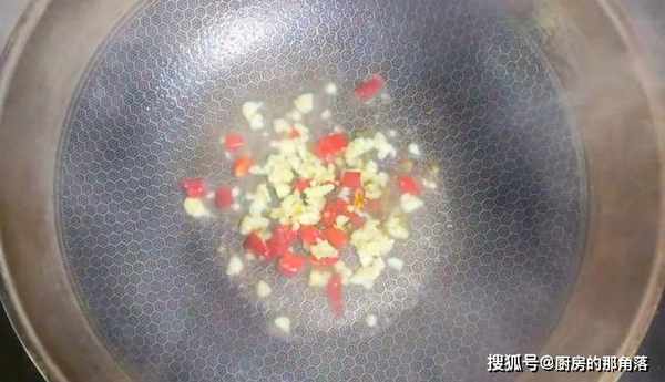 4.炒鍋燒熱放適量的寬油滑鍋,油熱後將寬油倒出,鍋中留少許的底油,剛準備好的料頭放入裡面爆炒出香味。