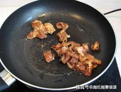 第三步,炒鍋中添上油,待油燒熱後,將醃制好的猪肉放入,快速的滑散開,待炒至變色後;