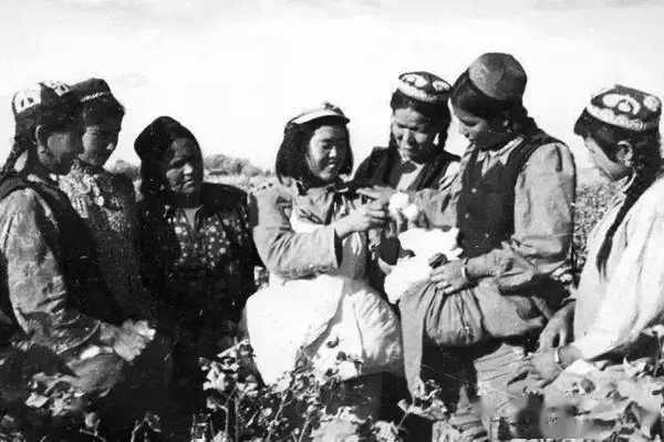 △兵團支邊女青年和新疆勞動女性一起採摘棉花