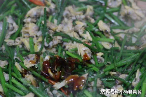 3、韭菜苔清洗並切段,然後沖洗起鍋熱油,將它翻炒一下,稍微變軟之後咱們將花甲肉回鍋,一起翻炒入味,隨後加上一勺蚝油提升鮮味,再擱點食鹽炒勻,這道菜品的烹飪就算是完成了。