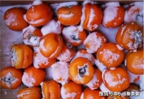 然後第二種要說的就是凍柿子,這也是一種北方地區才能吃到的水果,其實和凍梨差不多一個意思,就是將我們平時吃到的柿子低溫冰凍,然後浸泡解凍食用,口味的話不太好描述,但與平時吃柿子真的是一種完全不同的體驗,有機會可一定要試試哦。