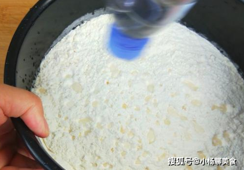 3、趁著燒水的時間,咱們準備適量的麵粉,放到盆子裡面去,然後再準備上一個瓶子,裡面裝上清水之後,在瓶蓋子上面紮幾個孔洞,然後一邊往裡面射水,一邊去晃動盆子。