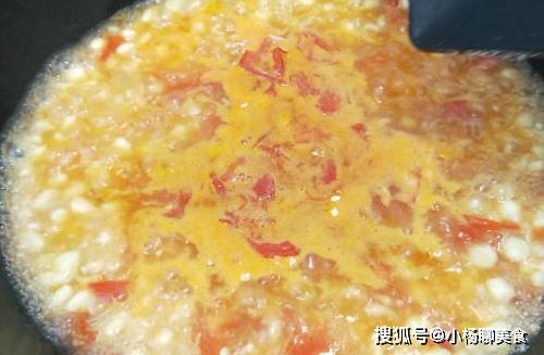 2、借著我們就是起鍋燒油,等油熱之後爆香一下葱段,隨後再將蕃茄丁放到鍋裡面去,加上一勺食鹽去煸炒,將蕃茄的汁水都給炒出來,再然後直接加適量清水下鍋,蓋上蓋子用大火去燒煮,將湯汁煮到沸騰即可。