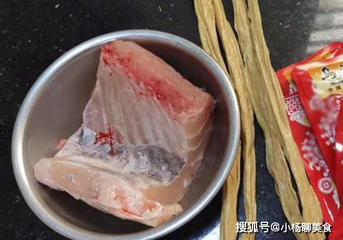 1、魚腩清洗之後,咱們將其切製成塊狀待用,上面有黑膜的話盡可能去除,這玩意腥味特別的濃;腐竹的話提前溫水泡發,隨後撈出瀝幹待用。