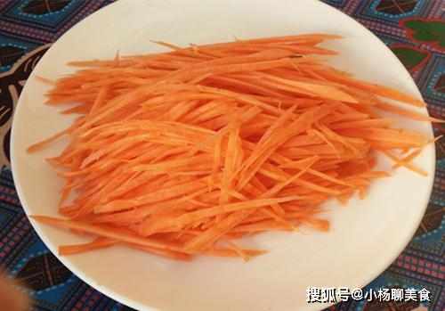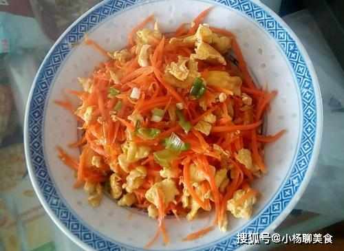 3、重新起鍋燒油,先將胡蘿蔔絲與青椒絲下鍋翻炒,炒到微微有些發軟的時候,咱們加入適量的食鹽,炒勻之後將雞蛋回鍋,再次翻炒入味即可出鍋,美食製作完畢。