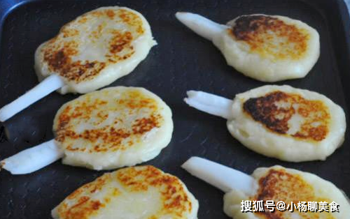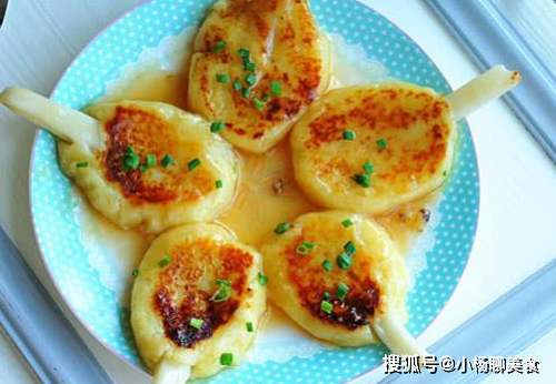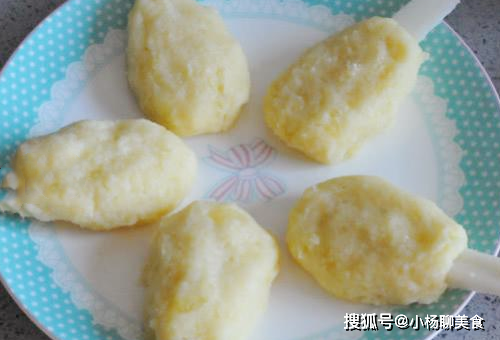 4、取出適量的洋芋麵團,放在手心壓扁並包入一根藕段,做成類似於肋排的樣子待用。