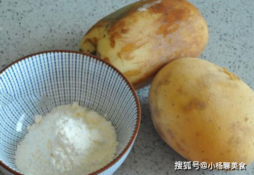 準備食材:洋芋一個、蓮藕一個、麵粉一杯、香葱兩根、白糖一勺、白醋一勺、醬油半勺、食鹽適量、玉米澱粉一勺